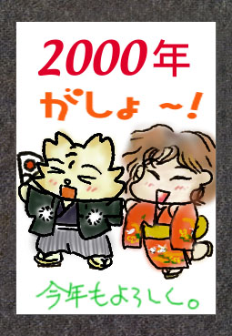 表紙ハンガーからもってきたかなり初期の絵。 初代表紙が置きっぱなしで2000年を迎えようとしたのであわてて描いた正月絵。たしか掲示板も正月色にしてみたような・・・。でも1月中旬までこれ使ってた。